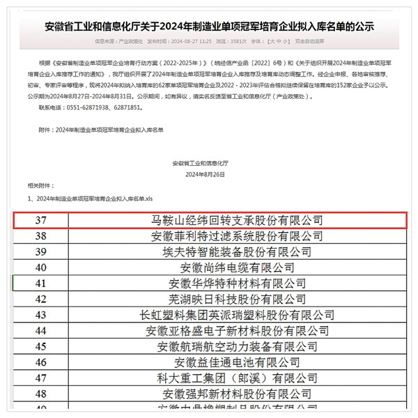 熱烈祝賀經緯大型風電主軸承及偏航、變槳軸承技術升級項目被認定為2023年“安徽省制造業數字化轉型典型示范項目”